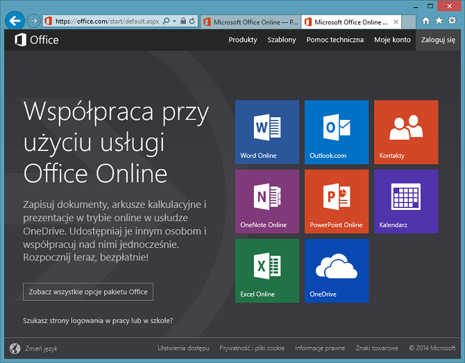oprogramowanie do tworzenia i edycji dokumentów Word Online, Excel Online, PowerPoint Online;