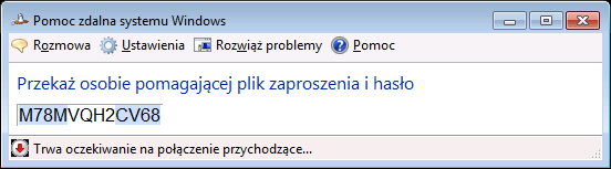W tym momencie nasz komputer jest już gotowy do przyjęcia pomocy zdalnej. Wyświetla nam okno z kodem potrzebnym do połączenia komputerów zapraszającego i pomagającego oraz opcjami, jakie mogą być przydatne w trakcie realizacji pomocy zdalnej.