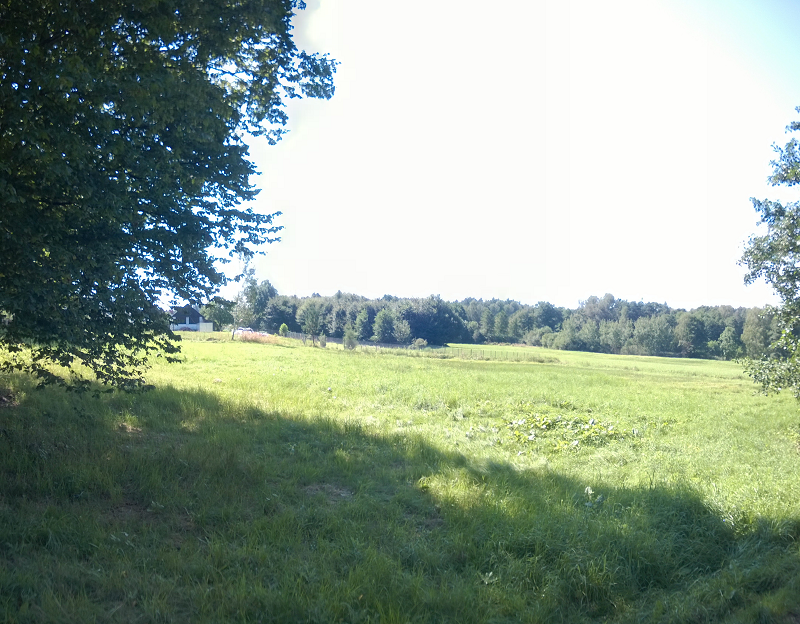 No i zaraz na początku chcę zrobić panoramę pięknej łąki na skraju wsi. Włączam aplikację, ustawiam Lumię 920 pionowo i próbuję. Pierwsze ujęcie OK, aplikacja każe okręcać się w prawo. Celuję obiektywem zgodnie z zaleceniem Lumii i dokonuje się drugie ujęcie. Kolejne żądanie obrotu w prawo, ale Lumia się gubi i nie pokazuje mi, w co mam teraz celować. W rezultacie panorama kończy się na sklejeniu dwóch ujęć. Wynik przetransformowany do szerokości 800 pikseli widać poniżej. Oryginał ma rozdzielczość 4282 x 3343.