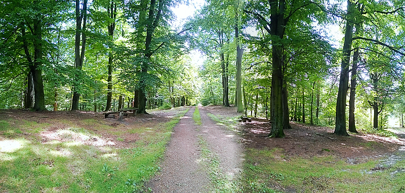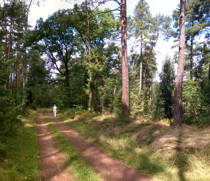 Potem gdzieś w środku spaceru kusi mnie szeroki kadr od ścieżki przez ciekawe poszycie leśne po prawej stronie. Niestety znowu kończy się na dwóch ujęciach. Rozdzielczość oryginału 4053 x 3495. Efekt poniżej dopasowany do możliwości blogu.