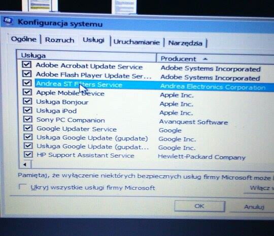Ja: W zakładce „Uruchamianie” spacyfikuj (wyłącz) wszystko, co nie jest z Microsoftu, no możesz zostawić ewentualnie coś, czego na 100% jesteś pewna, że jest dobre!
