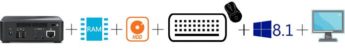 NUC (Celeron) + 4 GB RAM + 120 GB SSD + klawiatura/mysz + Windows 8.1 + monitor 19″ (dotyk)