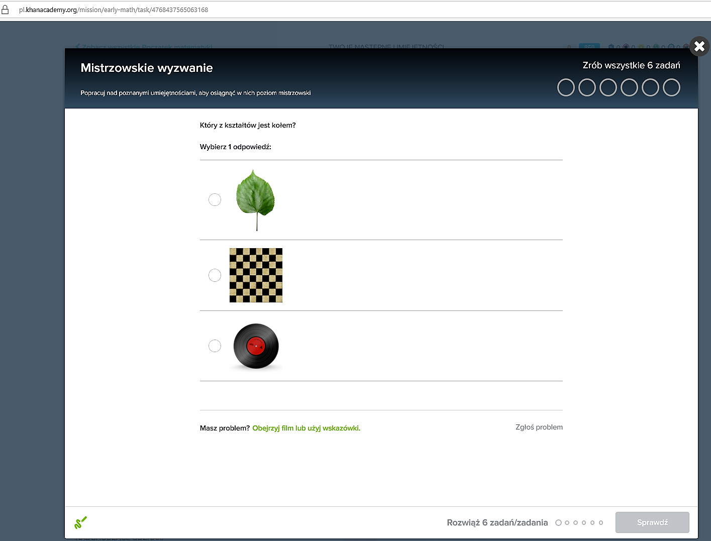 Khan Academy — sprawdziłem, czy w rozdziale Początek matematyki stopień trudności zadań nie przekracza możliwości sześciolatka